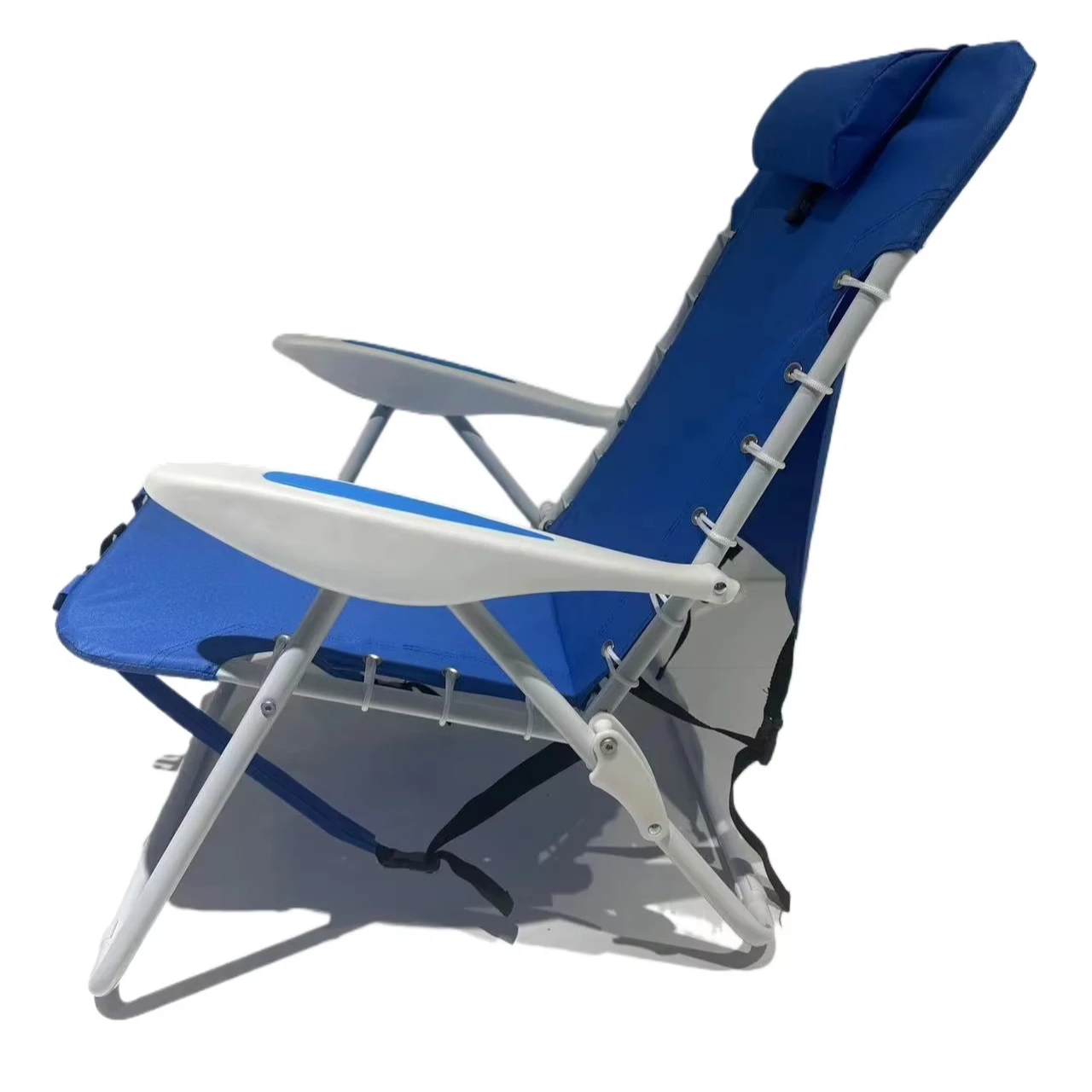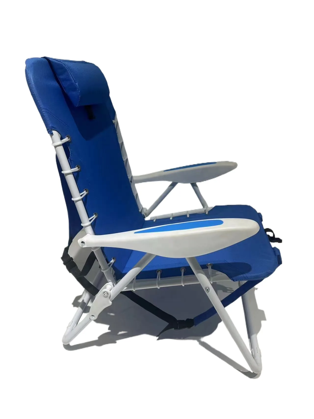 Folding Backpack Aluminum Beach Chair and Two Bags on Backrest Big Plastic Armrest