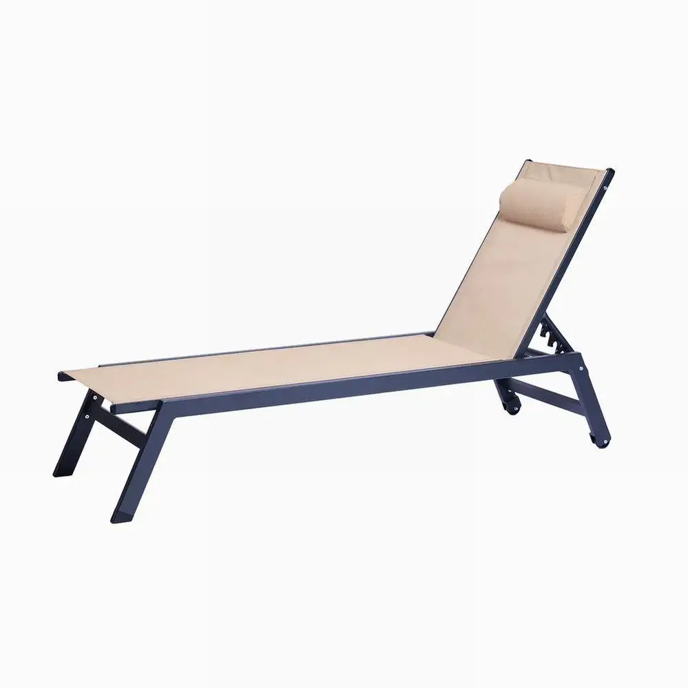 Beach Lounger Chaise Lightweight Beach Sun Bed Aluminum Beach Bed with Wheel Oem Metal Outdoor Furniture Modern